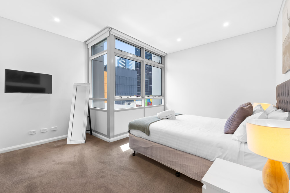 Close to transport, this two-bedroom apartment provides modern CBD living. There is a spacious lounge & dining area with Wi-Fi, a well-equipped kitchen with dishwasher, a nice bathroom with shower over bath and an internal laundry, spacious Balcony. The bedroom consists of a queen bed with bedside tables, built-in wardrobes and balcony access. The apartment is in a secure building with swipe access.