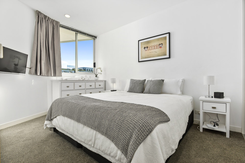 Fully furnished, super king bed, fantastic 4th-floor views, fully equipped kitchen, modern bathroom and one car parking space.