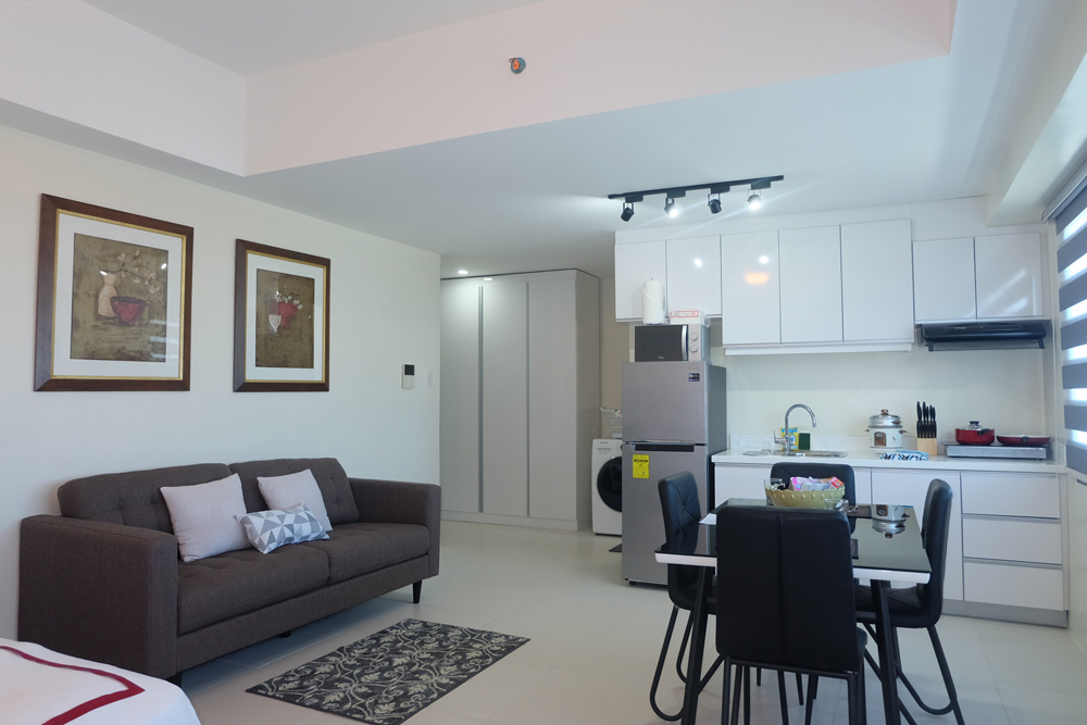 A minimalist and spacious studio apartment located at Icon Plaza, Bonifacio Global City (Taguig), Metro Manila.