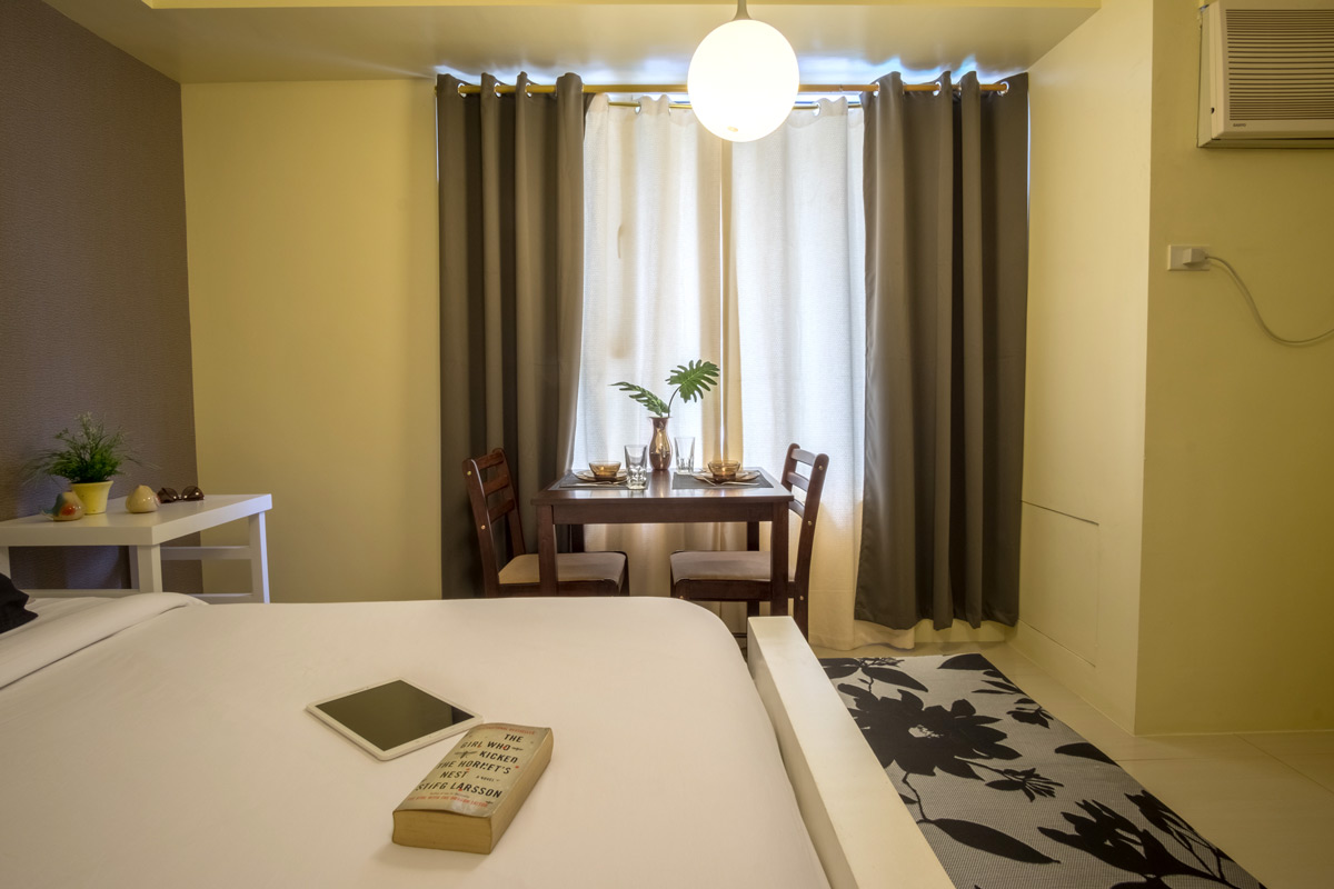 A delightful fully furnished studio apartment in the Cebu’s Calyx Center condominium complex.