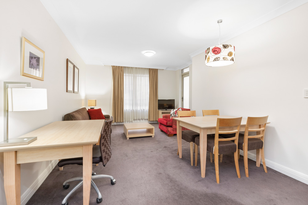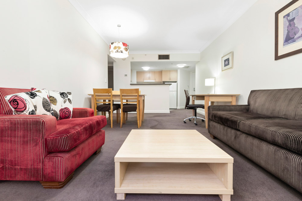 Equipped and furnished with a Queen size bed, built-in robe, comfortable lounge, plasma TV, as well as a spacious living & dining area. A well-equipped kitchen with dishwasher and internal laundry with separate washer & dryer machines completes the apartment.