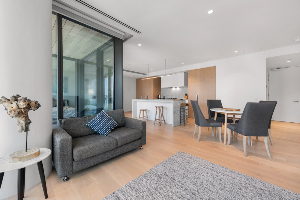 On-site facilities include day-time concierge, 25m swimming pool, yoga room, private dining rooms and kitchen, lounge and terrace entertaining areas, together with a three-level vertical sky-garden sitting atop the building.