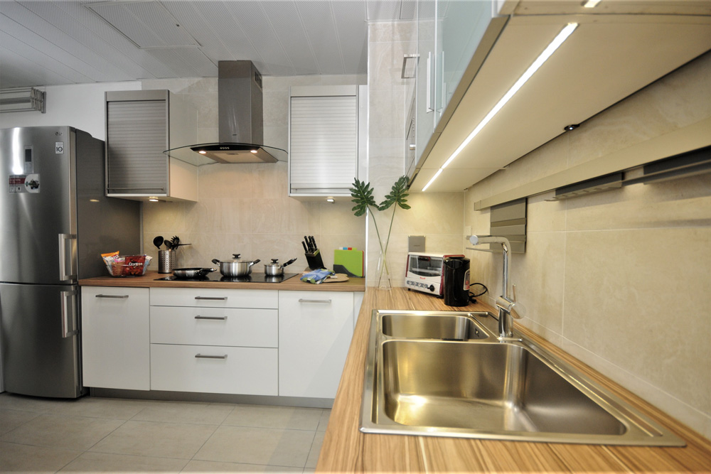 This condo is a very well-appointed two-bedroom executive serviced apartment, with a very large modern kitchen, stone floors, spacious dining area, and bathrooms.