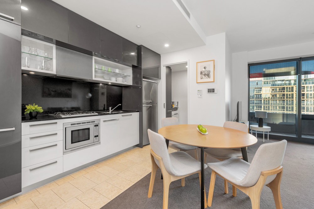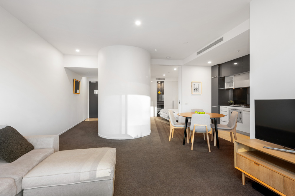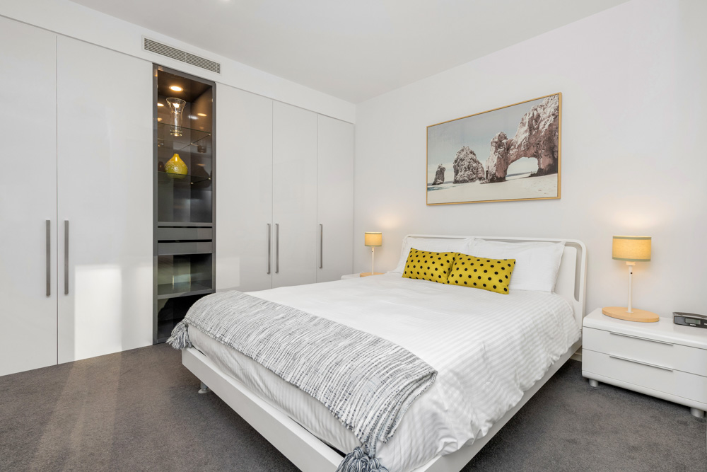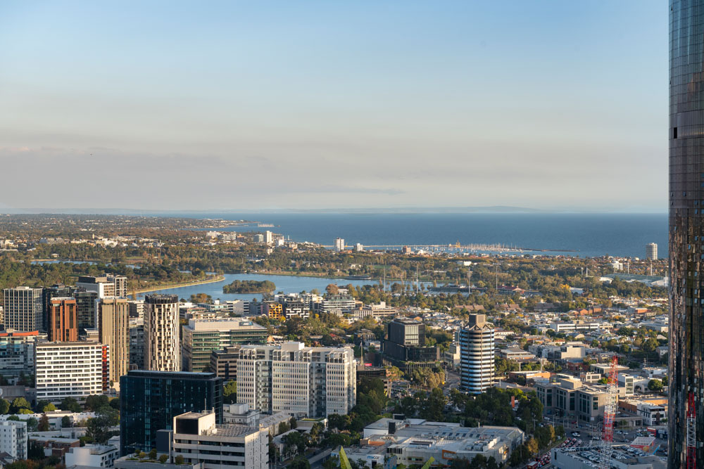 This one-bedroom apartment is located on the 46th floor and features floor-to-ceiling windows with unbeatable views of Melbourne, including views of Albert Park and the bay.
