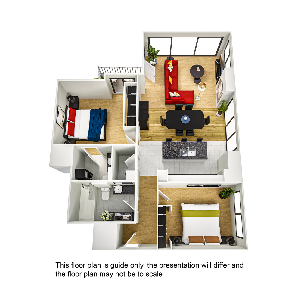 This Eureka Tower two-bedroom corporate apartment is located on the 61st level. Floor to ceiling windows with unbeatable views of the City of Melbourne. The master bedroom has an ensuite, the second bedroom has a dedicated bathroom with both shower and bath. Your balcony overlooks Yarra River and the City, offering panoramic views.