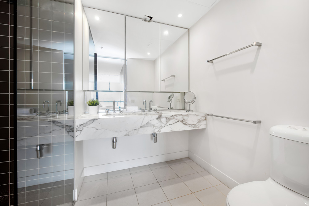 This prestige building is highly sought after and never disappoints. The 10th-floor facilities are the talk of Melbourne, including three three-lane pool, a spa, a steam room, sauna, massage room, a conference room, a business centre and the best-equipped gym in town.