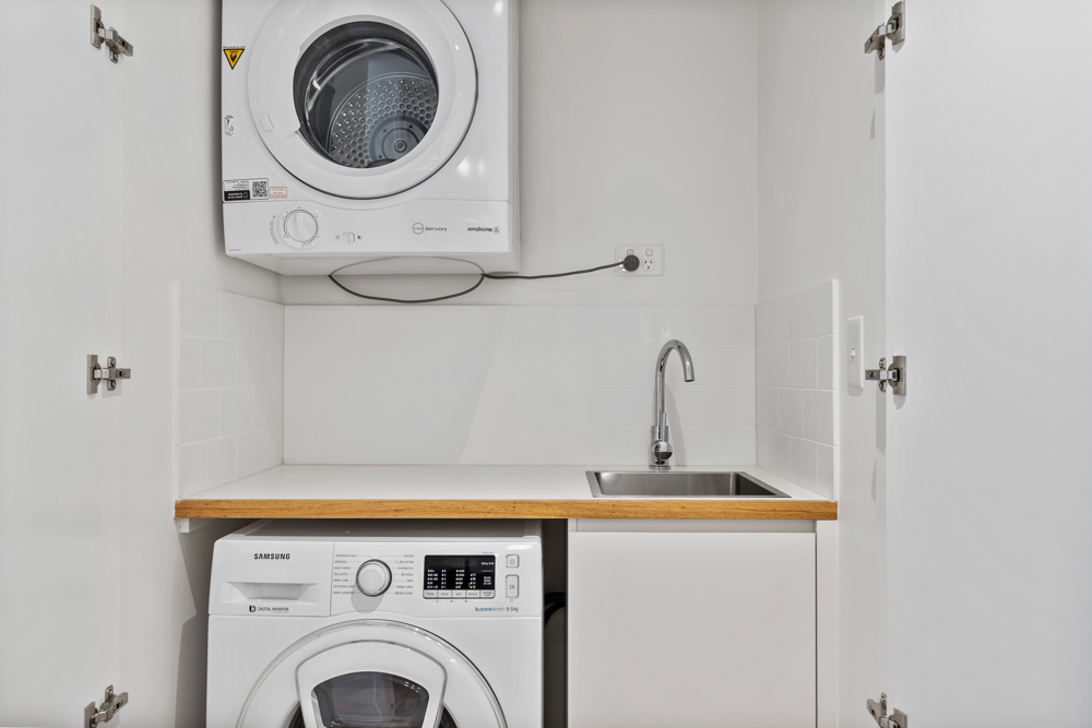 This 1 Bed 1 Bath apartment has everything you need for your long stay in Brisbane including a bedroom with plenty of wardrobe space, a comfortable living room with a chaise sofa and smart TV, a kitchen with new Miele appliances, a laundry room with a washing machine and dryer, a separate clothes drying room, and a large balcony with an outdoor lounge overlooking the city. The apartment is complete with ducted air-conditioning, high-speed wifi, and black-out blinds to ensure your comfort and privacy.