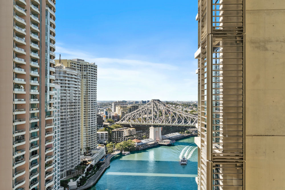 Stay in the heart of Brisbane City in an international architecturally designed building with views of the river, Storey Bridge, and the CBD.