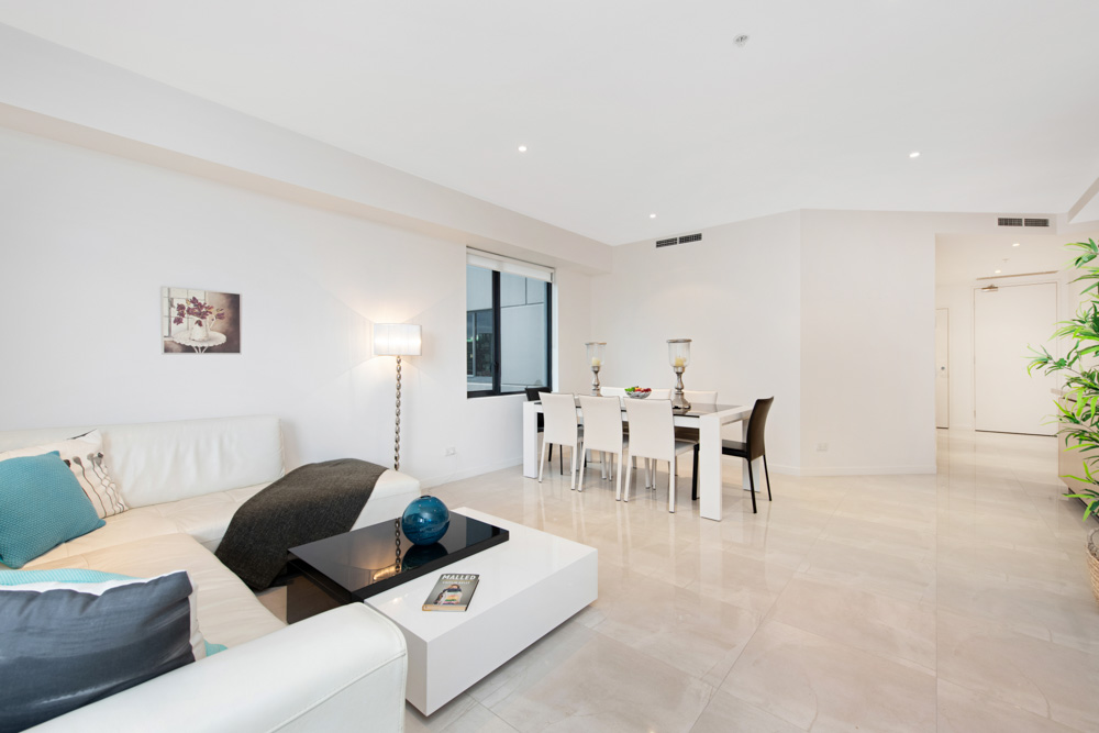 Comprising open plan living, dining, and kitchen areas. Features include modern furnishings, built-in robes and air-conditioning/heating.