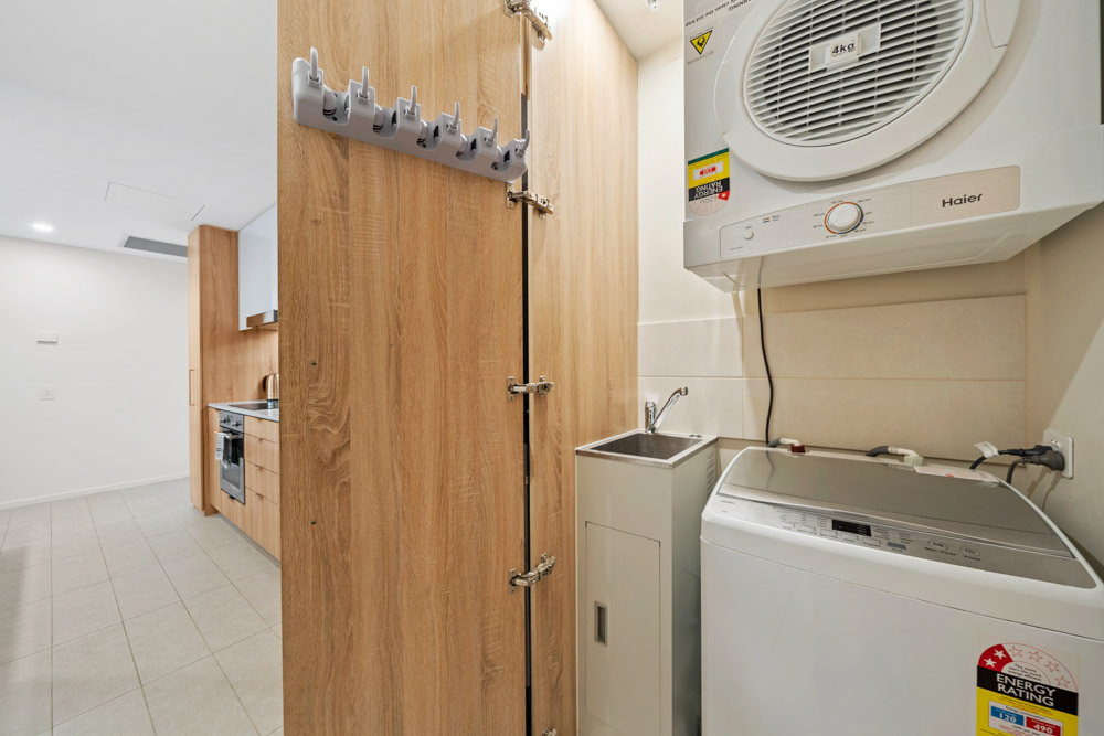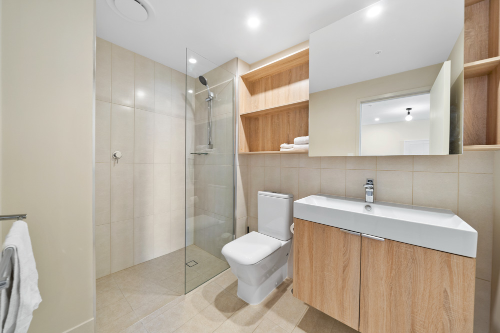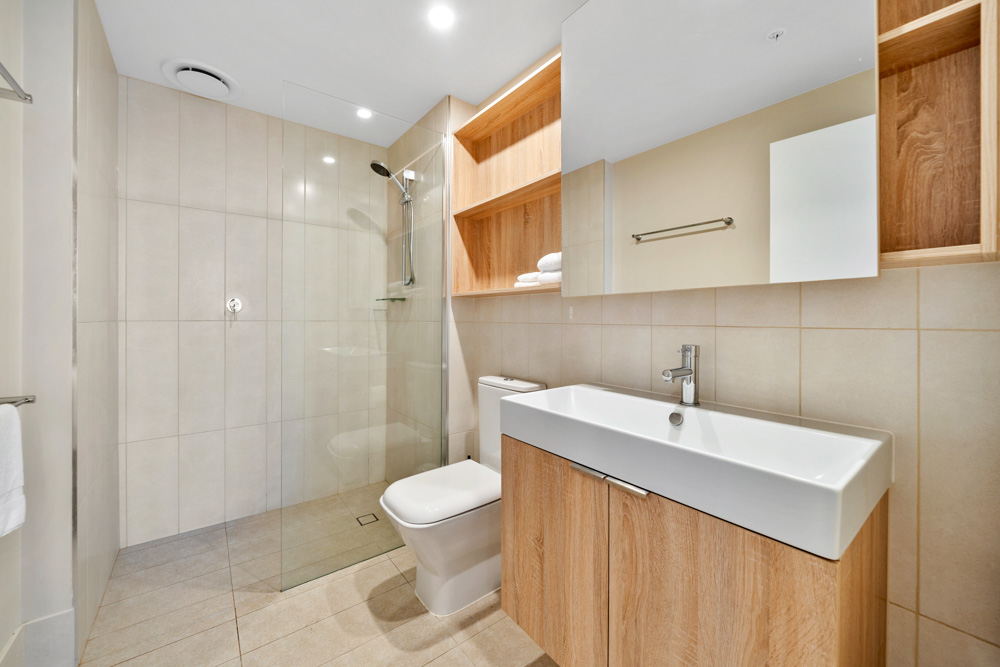 This spacious open-plan living and dining area, with plenty of natural light. Sliding glass doors offer seamless indoor/outdoor living with direct access to the balcony. A well-appointed galley-style kitchen features quality European appliances, stone benchtops and plenty of storage. The bedrooms are generous in size and feature built-in wardrobes with plenty of storage. The bathrooms have premium fixtures throughout, there is also a concealed laundry.