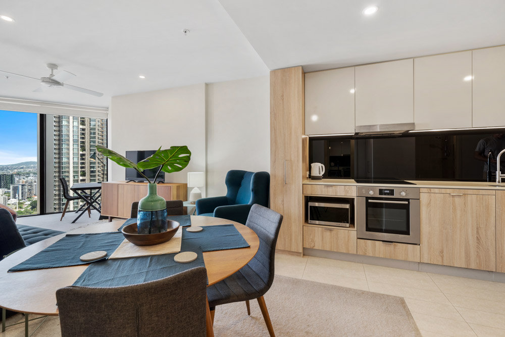 A fantastic Brisbane inner-city apartment in the sought-after Spire Residences. This fully furnished high floor one-bedroom apartment offers the ultra-convenient inner city lifestyle that is just a short distance away from the riverside precinct – Howard Smith Wharves, Brisbane City & Fortitude Valley.