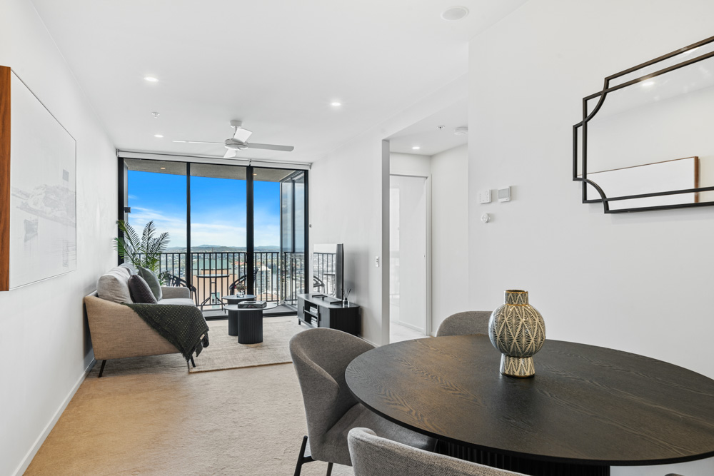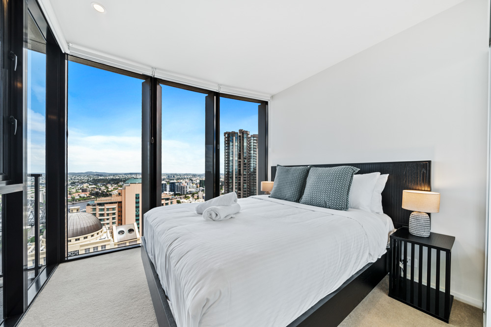 This fantastic 39th-floor Brisbane inner-city apartment is situated in the sought-after Spire Residences. This fully furnished one-bedroom unit offers a convenient urban lifestyle just moments from the riverfront at Howard Smith Wharves, Brisbane City, and Fortitude Valley.