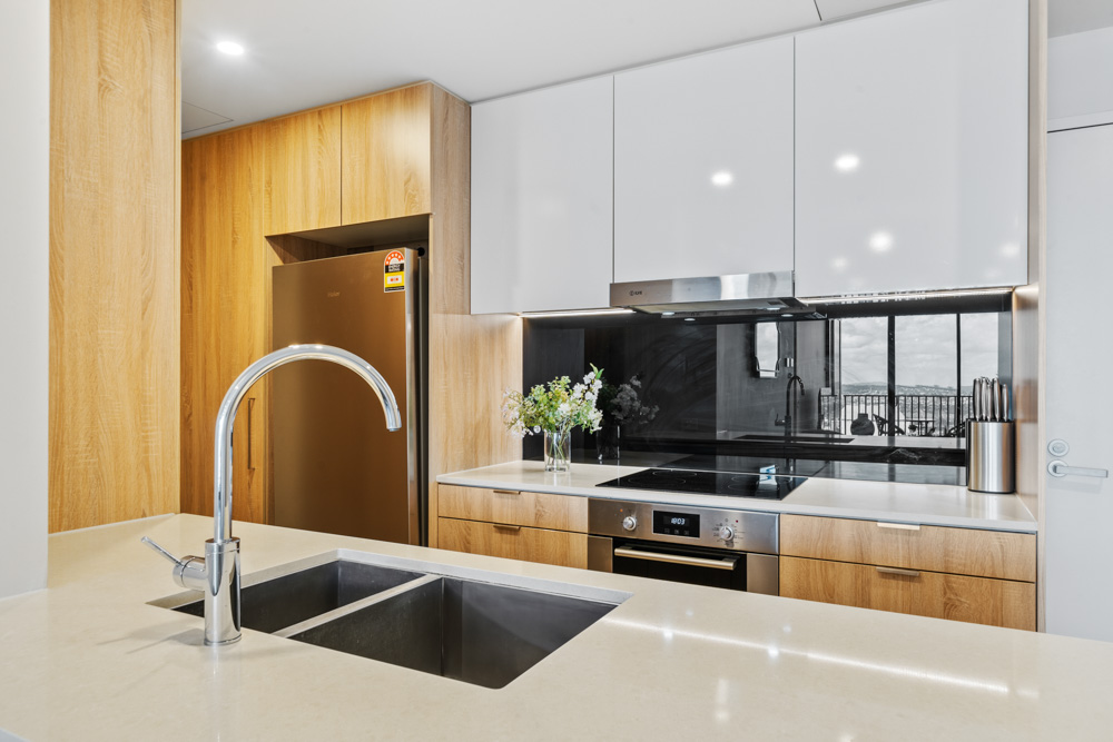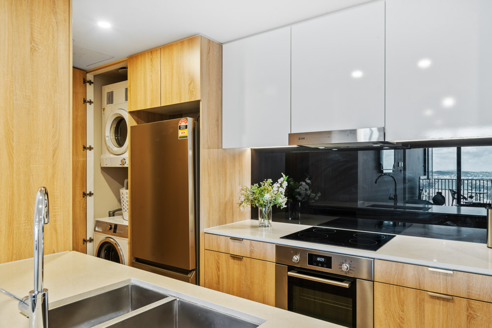 – Fully equipped kitchen with quality European appliances including dishwasher.