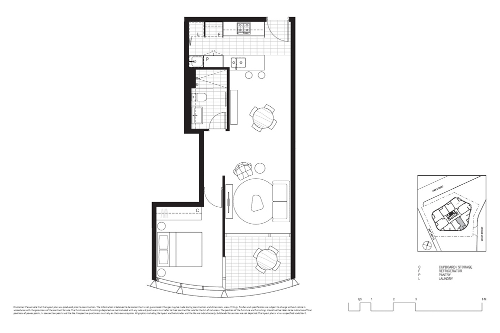 The spacious open-plan living and dining area fills with natural light, thanks to ample windows. Sliding glass doors create a seamless transition between indoor and outdoor living, providing direct access to the entertainer’s balcony with a river view. The well-appointed galley-style kitchen features top-quality European appliances, stone countertops, and ample storage. The master bedroom is generously sized and includes a built-in wardrobe with plenty of space. The bathroom is outfitted with premium fixtures, and there’s also a concealed laundry and linen closet
